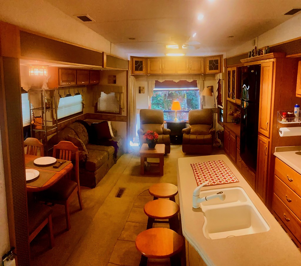 Creekside at Bald Mountain Park – Creekfront Retreat! Welcome to your own piece of paradise in the beautiful and desirable Creekside at Bald Mountain Park community! Nestled directly on the creek, this peaceful getaway offers the perfect combination of comfort and nature. Enjoy the serene view of trees and mountain laurel through the large picture window, and open your windows to hear the soothing sounds of the rushing creek just steps from your back door. This 2003 Doubletree Mobile Suites Model 36CK3 RV, featuring three slide-outs, sits beneath a protective aluminum RV Port that provides a spacious covered deck—perfect for relaxing or entertaining outdoors. From the deck, stairs lead down to a cozy sitting area with a firepit, and additional steps take you right to the water's edge. Inside, this one-bedroom, one-bath home is fully equipped for year-round living or a ready-to-enjoy getaway. Features include a gas stove/oven, built-in microwave, refrigerator/freezer, washer/dryer combo, central vacuum system, TV, ceiling fans, electric heat & air with thermostat, portable dehumidifier, smoke detectors, and window screens. Every piece of furnishing—inside and out—is included, providing a truly turn-key experience. The property connects to county water and a community septic system. Enjoy community amenities, including the pavilion and common areas, where neighbors gather for events and activities. All this, just minutes from Lake Chatuge, golf courses, the Georgia Mountain Fairgrounds, and everything that beautiful Hiawassee has to offer! Whether you're looking for a tranquil creek side escape or a cozy full-time residence, this property offers the best of mountain living with comfort and charm.